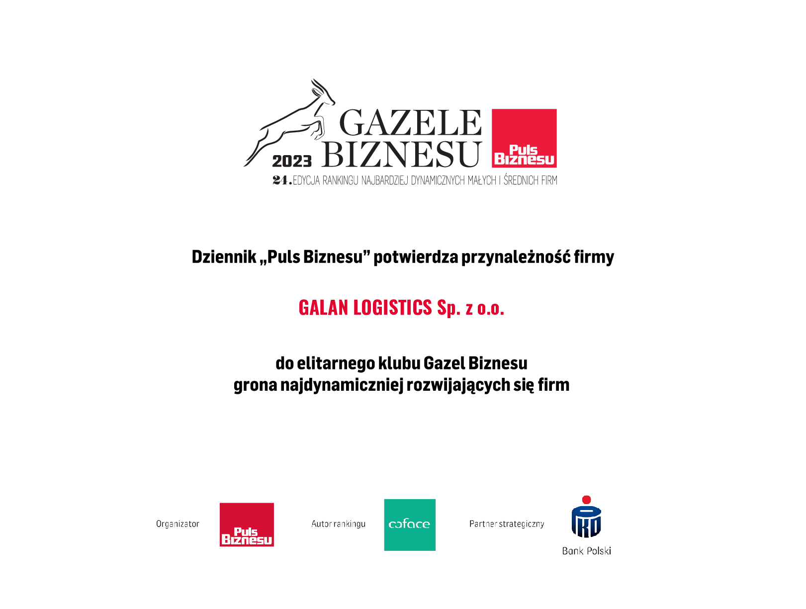 Galan Logistics har tilldelats det prestigefyllda priset Gazela Biznesu 2023